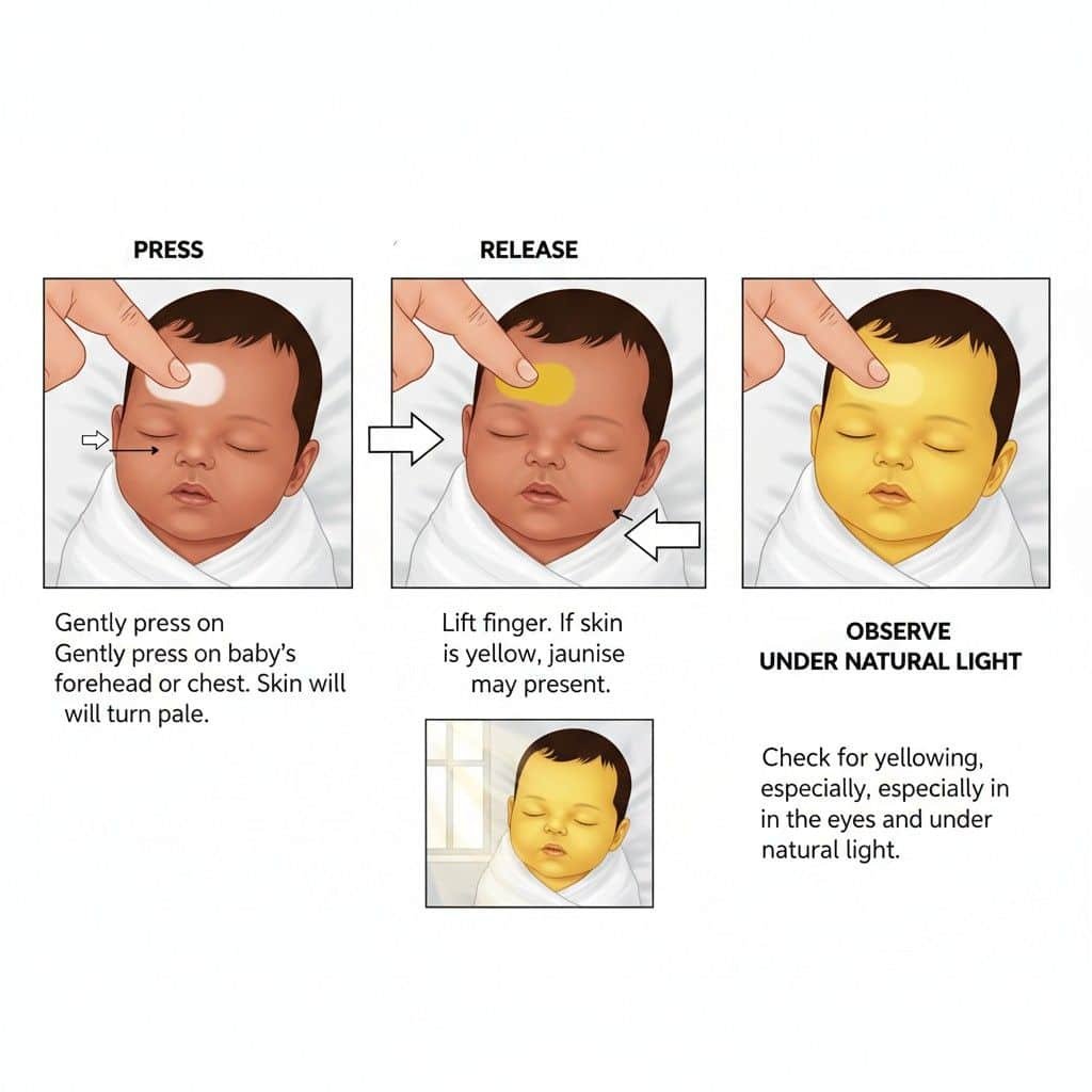 Q: My baby has darker skin. How do I check? A: Focus on the whites of the eyes, gums, and palms/soles. The “press test” is especially helpful. Look for a yellow undertone rather than a surface color change.